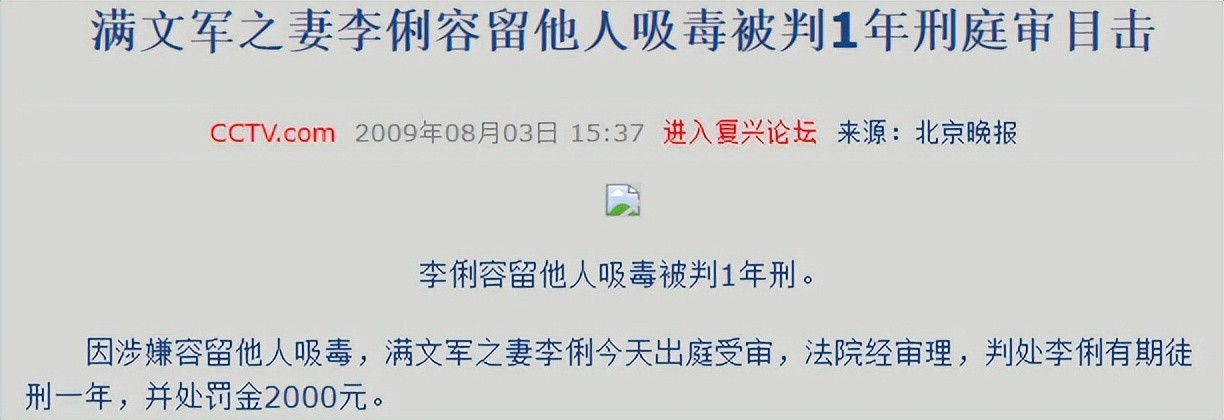 法庭上满文军非但没有帮妻子澄清,反而提供证词证实李俐吸毒的事情。