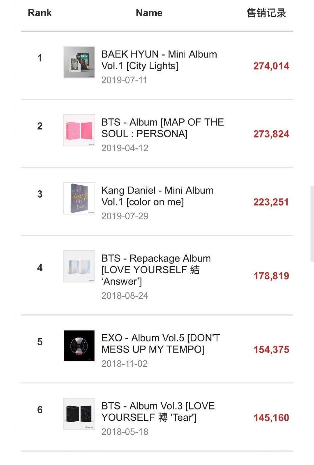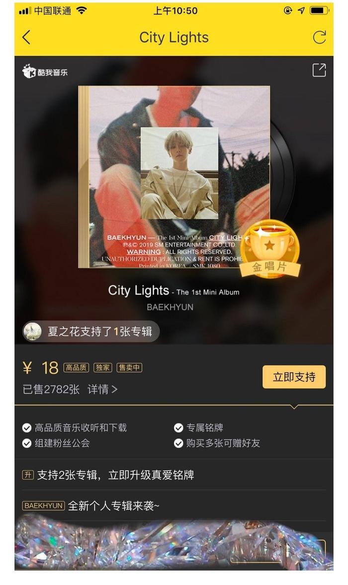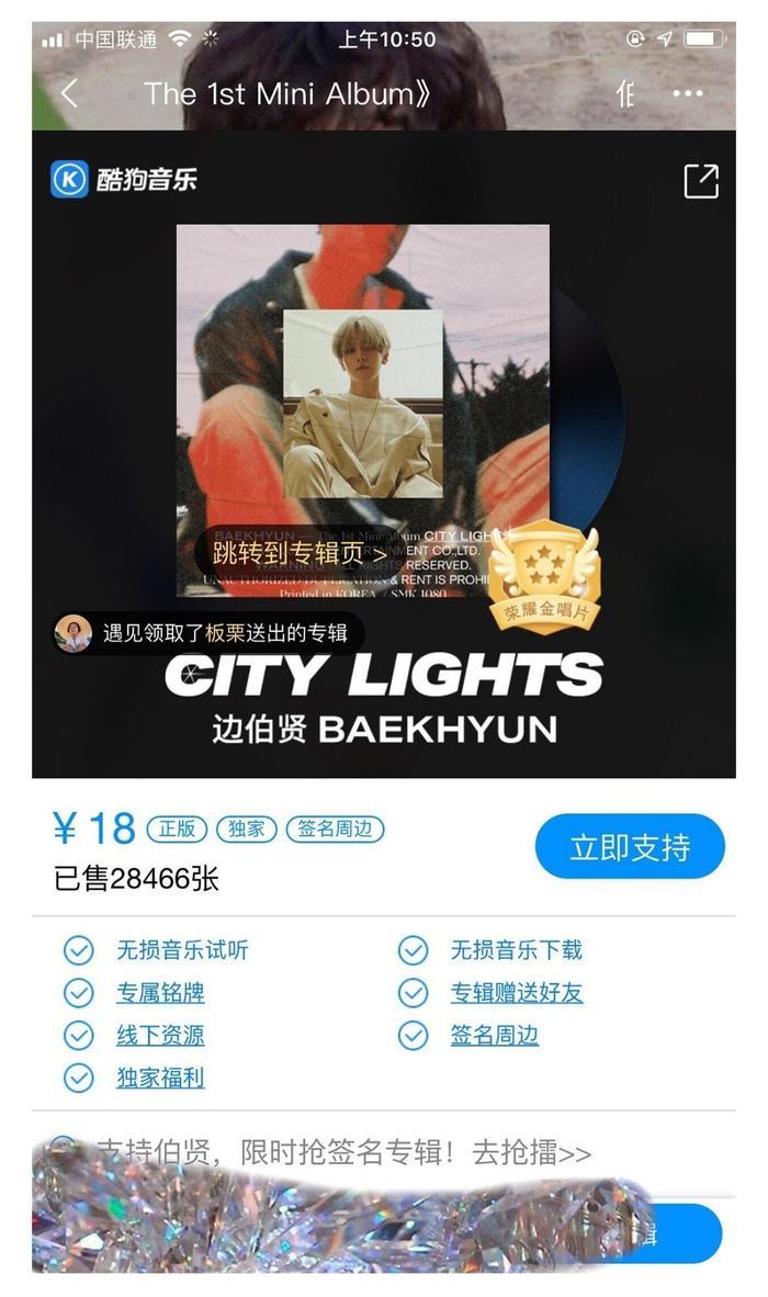 边伯贤solo专辑成绩汇总~边伯贤首张个人solo专辑《City Lights》G榜