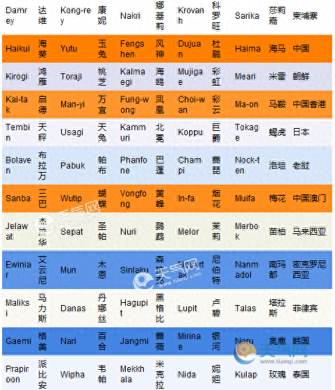 2025年台风命名表一览 2025最新台风命名表大全及其含义