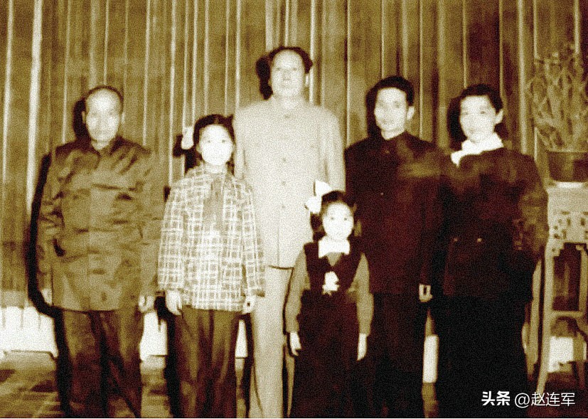 1956年3月合影。左起:毛泽堂、毛远慧、毛泽东、毛远平、毛泽全、徐寄萍。