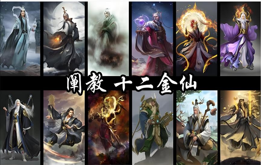 (广成子、赤精子、黄龙真人、惧留孙、太乙真人、灵宝大法师、文殊广法天尊、普贤真人、慈航道人、玉鼎真人、道行天尊、清虚道德真君)