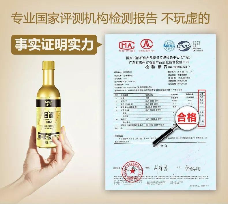 作为一款清洁型的超浓缩燃油宝,车仆金罐燃油宝采用世界著名原液——路博润公司美国原液,富含PEA清洁因子。经过反复测评及1200公里的深度实测,对清除积碳和提升动力效果显著。