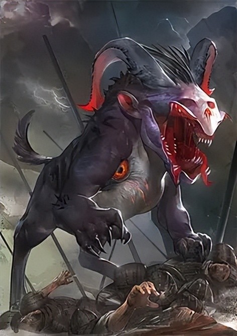 外形像狗,全身长满黑毛,它的食物是火焰,它的排泄物也是火焰,所到之处常常发生火灾,被人们视为不祥的象征。