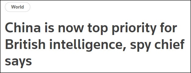 英军情六处负责人:中国现在是首要任务,比反恐还重要