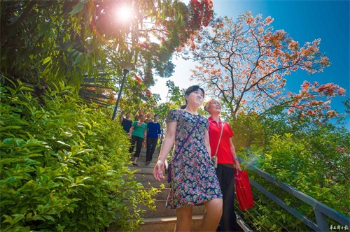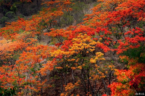 4到5月,是攀枝花市树凤凰树的盛花期。凤凰树,取名于“叶如飞凰之羽,花若丹凤之冠”之意。攀枝花市东区凤凰花公园,是四川最大的凤凰树集中种植区。漫步园内,花开若云霞,远眺仿若凤凰重生,满目火红,十分壮观。2万多株凤凰树花正在怒放,形成了漫山遍野的绝美红色花海。几年前,这里还是一片荒山,如今经过两年建设,今年5月已正式向游客、市民免费开放。