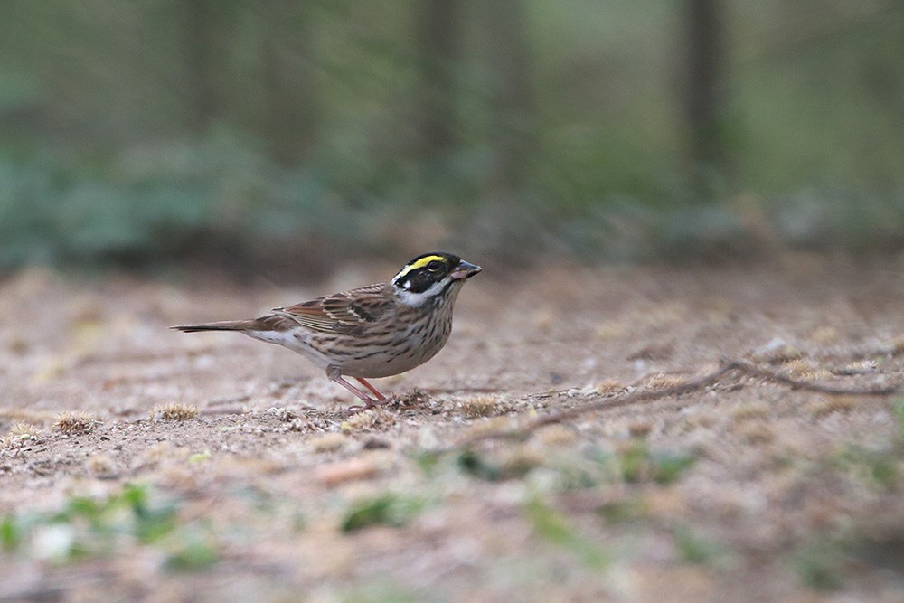雄鸟头部黑色具条纹,有显著的鲜黄色眉纹。下体更白而多纵纹,翼斑也更白,腰更显斑驳且尾色较重。
