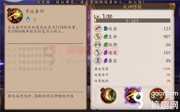 丢出套环对目标造成攻击力211%的伤害,有10%的概率把目标变成小纸人