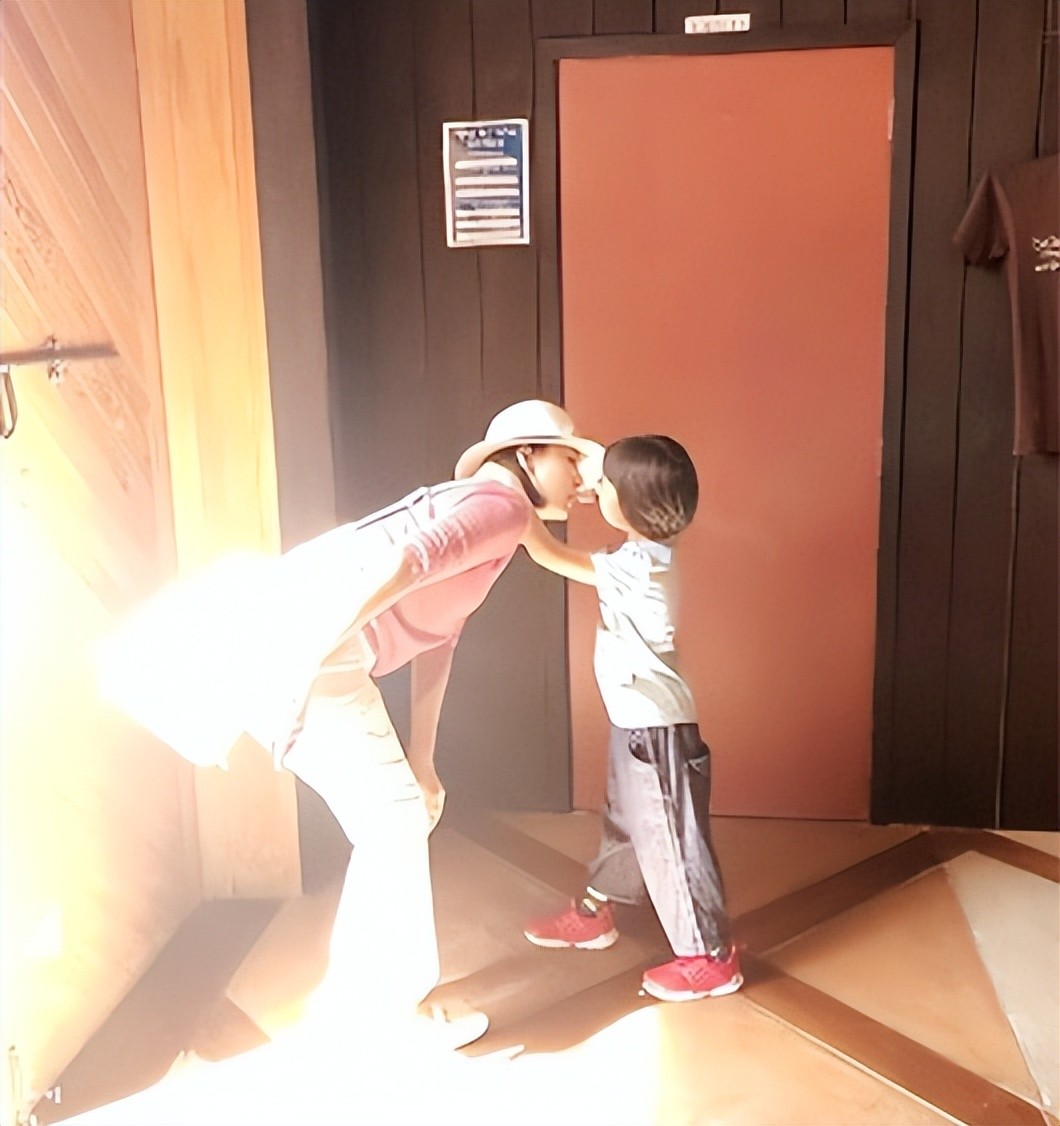 而在另一张图片里,画面里是张蕾和她的孩子。