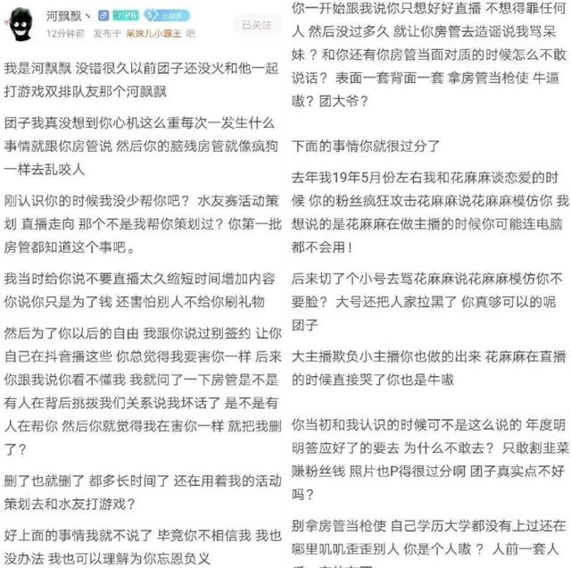 比如说自称是小团团以前策划的人,曝光了小团团以前和小主播谈恋爱的事情。而小团团直播间里神豪竟然临阵倒戈,也把矛头转向了小团团。爆出来的瓜算是最劲爆的。不但曝光了小团团盗用别人照片的事情,还实锤出来小团团的学历只是技校水平,一些流传很广的比较好看的照片,其实都被P得连亲妈都不认识了。