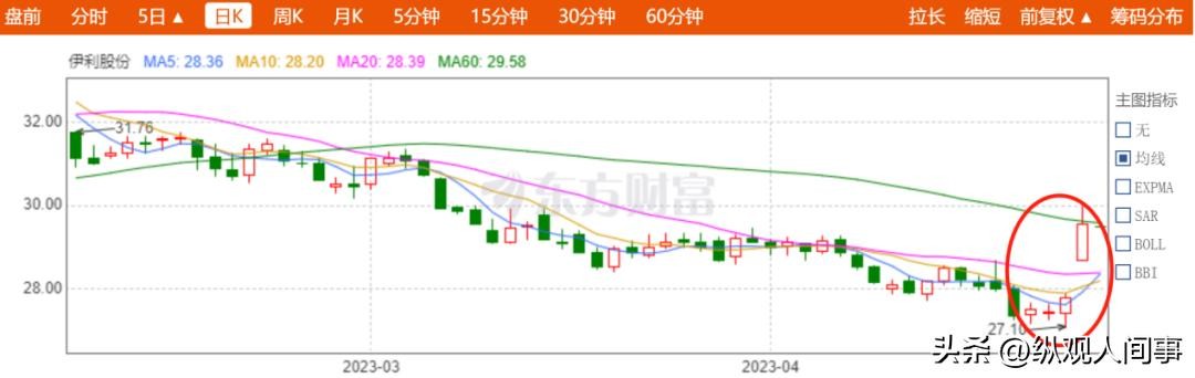 在蒙牛发布财报的前后几日,蒙牛企业的股价连续下跌,从4月18日到4月27日,实现了连续8天八连跌,相比较起来,伊利的业绩表现则更让投资者们更加放心。