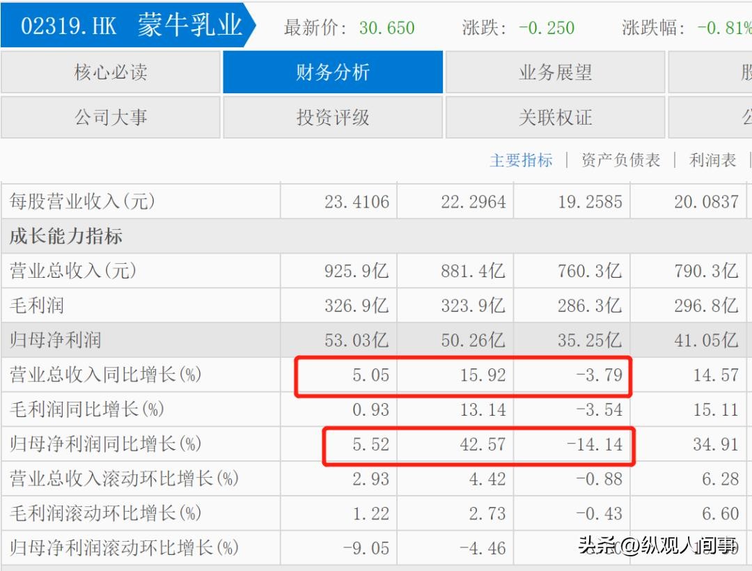 自从1996年上市到如今,伊利的总营收已经实现了连续30年增长,去年的各项指标更是大幅度上升,全方面领先蒙牛。