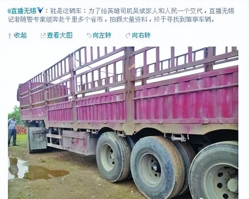 经过几天的搜寻考证,无锡警方最终在江西宜春找到了肇事车辆和司机。该车曾在5月29日下午时更换了损坏的制动毂,并且经过考证,该车也的确在6月1日中午时出现在了锡宜高速公路上,时间地点均吻合,后来经过检测,也确定了该车就是肇事车辆。