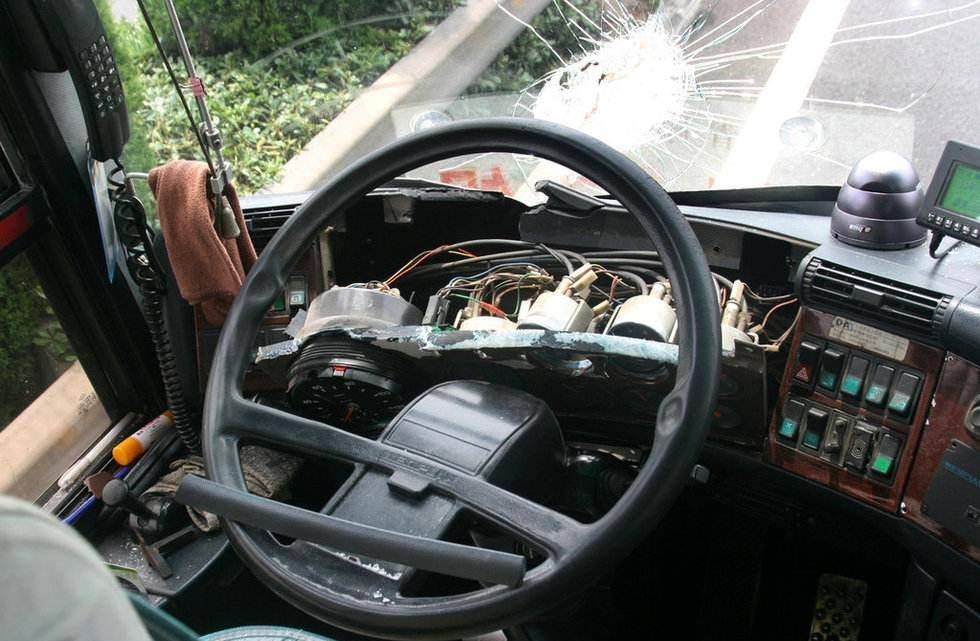 被砸后的主驾驶室
