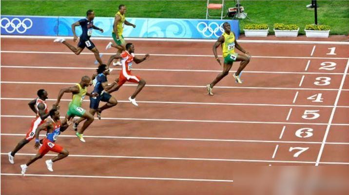 2008年北京奥运会,博尔特就像是一颗人形炮弹,"嗖"的一下就冲过了终点线。