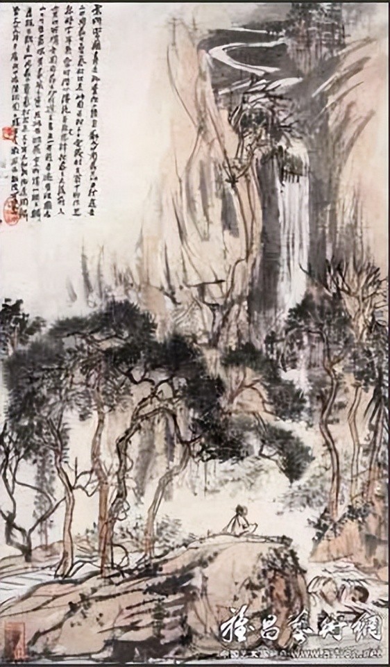 结合着他的作品《松下观瀑图》(1943年作),冯虚点评,“画景象的荒寒,笔墨的冷逸代表了李可染艺术个性的另一个侧面,也表明他对传统文人画做出了明确清醒的选择。也正是在这一基础上,他后来才有了投师齐白石的之举。”[2]