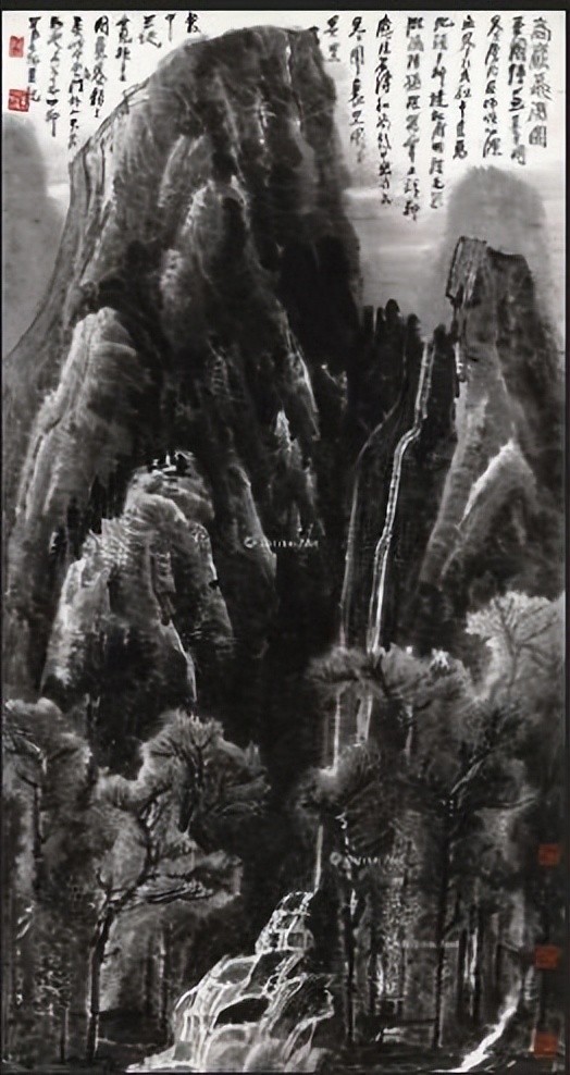 李可染 丁卯(1987)年作 高岩飞瀑图