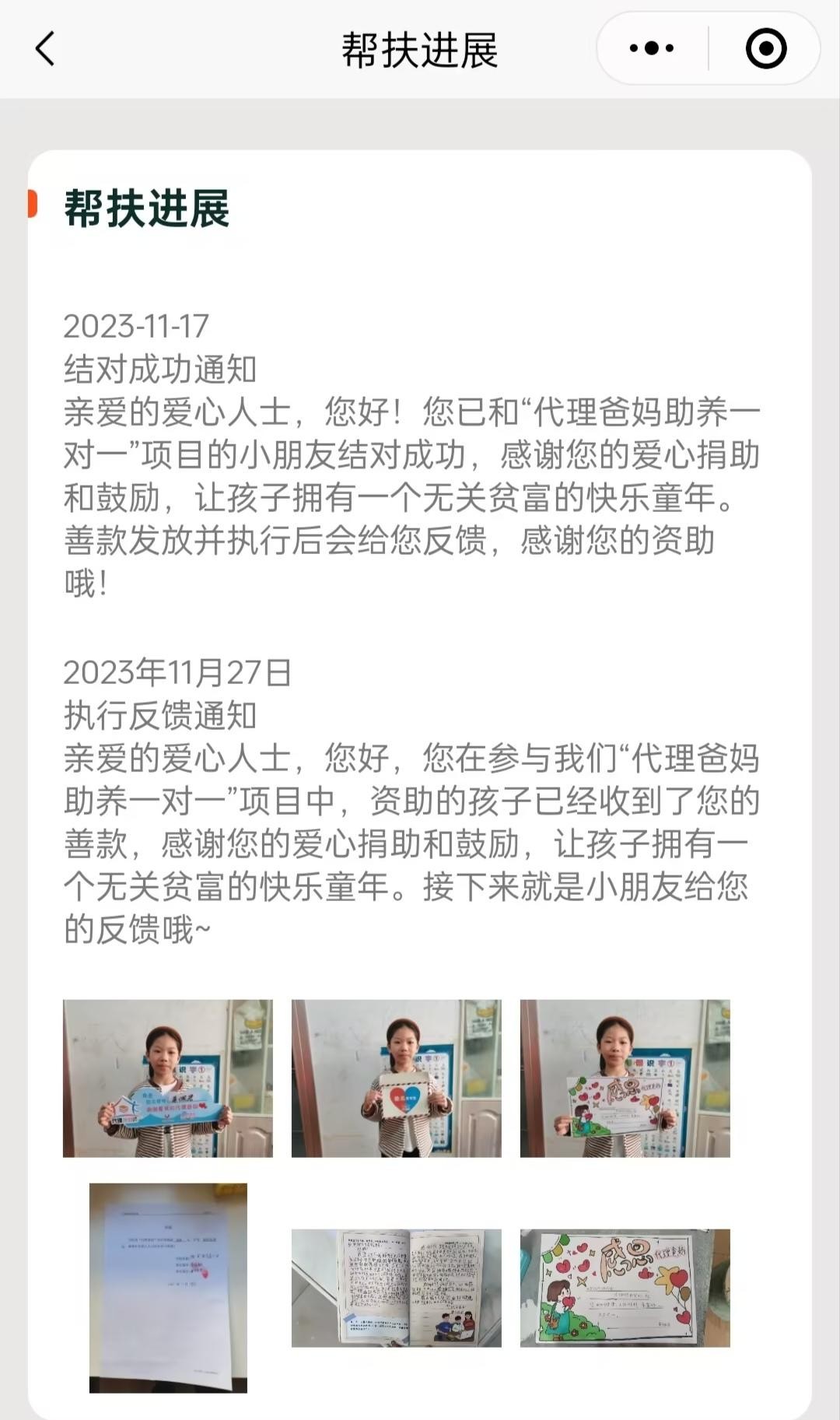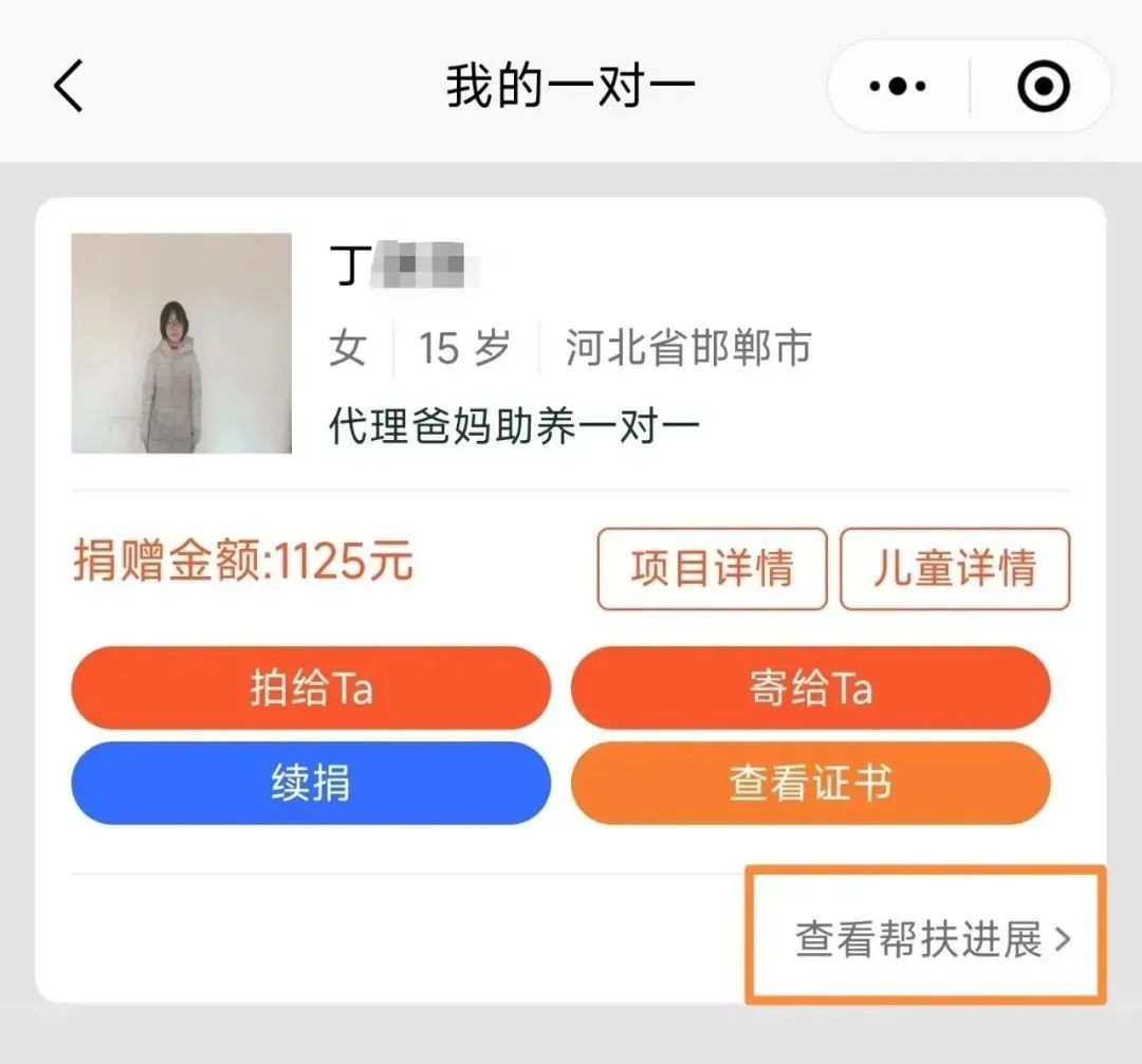 叮咚,您捐助的项目上新进展啦~如果您也是一名代理爸妈,想要查看孩子们的近期情况,不要着急,通过以下步骤就可以看见啦!(以下截图仅供参考查询流程呦~)