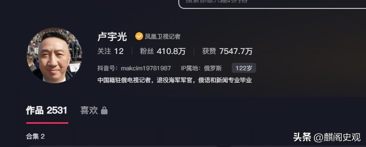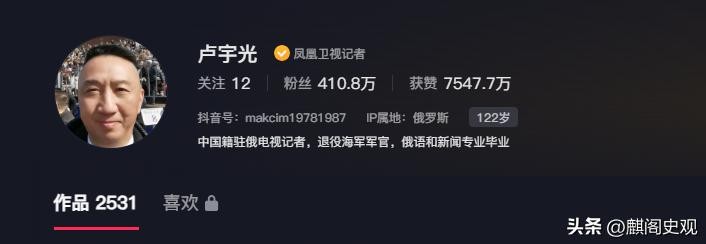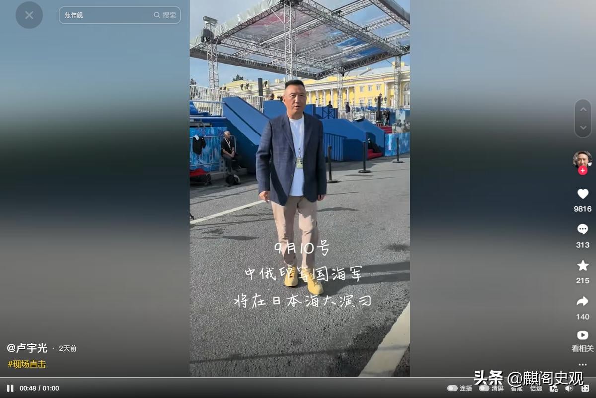 在抖音中,卢宇光会分享最近中国和俄罗斯的军事演习事件,用通俗易懂的话,讲述两国的友谊。