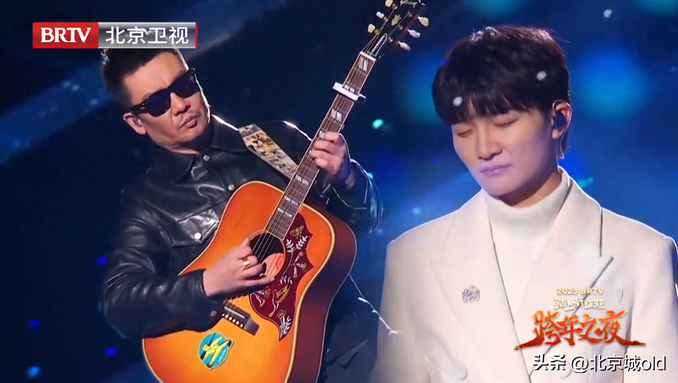 北京台不按套路出牌,一上来就放了崔健1956在工体演唱的高光名场面,也算是一次梦幻联动,时隔多年,再唱经典《一无所有》将‘摇滚精神’贯彻始终,唱功还是一如既往地优秀,独特嗓音,一张嘴就将舞台氛围燃到了极致,甭看北京当晚很冷,但丝毫不影响老将崔健的现场发挥。