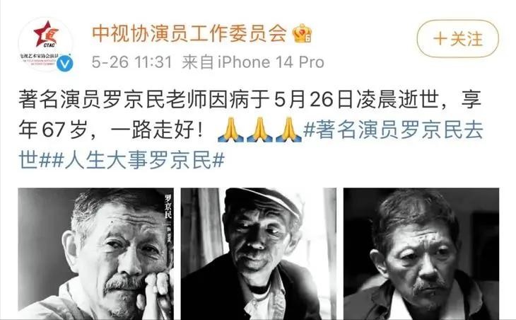 很多和他合作过的演员都纷纷发文悼念。罗京民先生去世时也只有67岁。