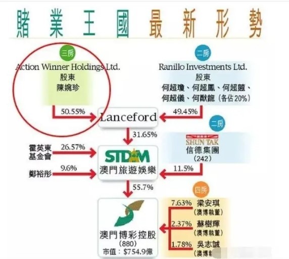 在2011年,陈婉珍和二太太联手挤走四太太,一举拿下赌王的最大公司的32%股份。