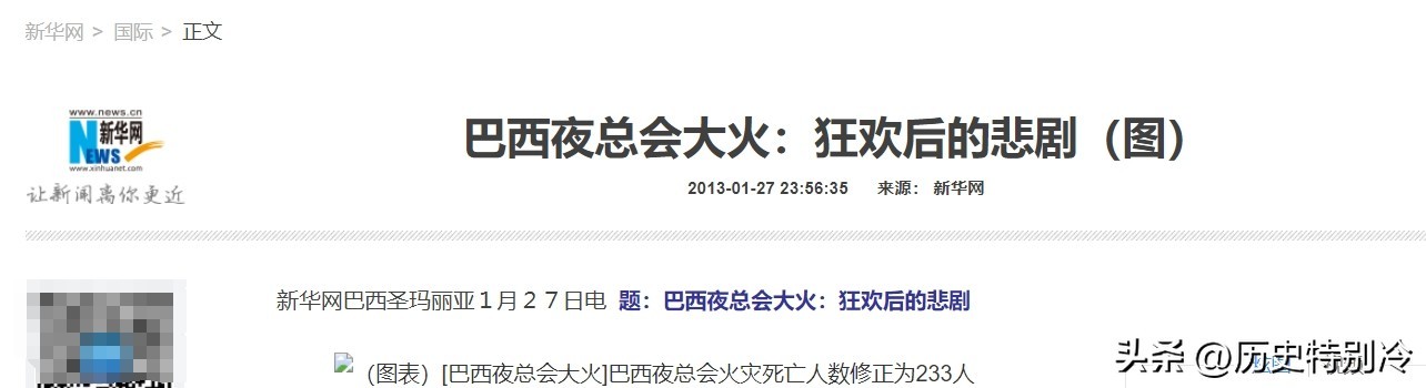 3、原文登载于共产党员网2013年1月28日:《巴西:夜总会火灾酿惨剧》