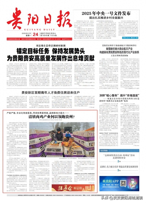 《贵阳日报》头版发文:清镇肉鸡产业何以领跑贵州?