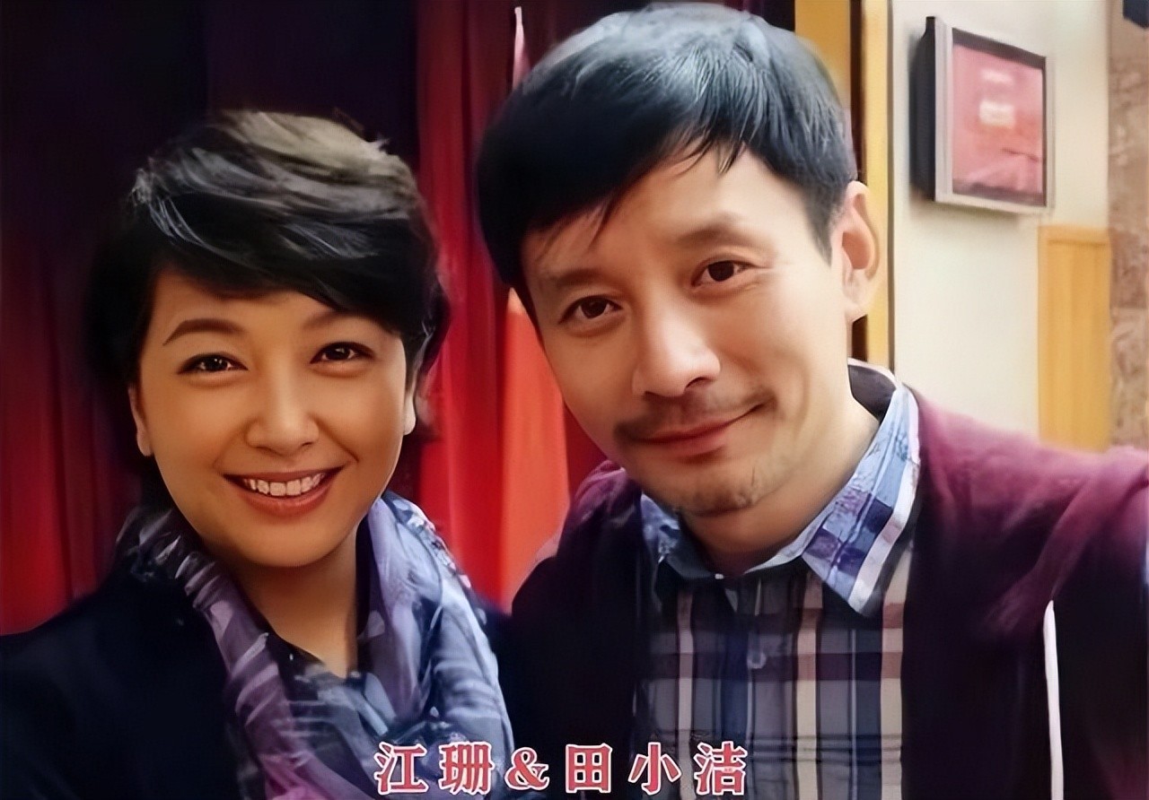2003年《好想好想谈恋爱》剧组认识,2005年结的婚。田小洁对江珊的女儿特别好,江珊还在影视歌混得不错,家庭很温馨。