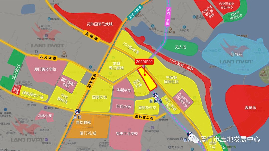 本地块位于杏锦路与杏林北路交叉口南侧董任站北侧,为地铁1号线杏锦路站地铁上盖项目。地块位居集美新城核心区门户地带,其周边集良好区位、醇熟商业、畅达交通及惬意人居四大优势于一体。