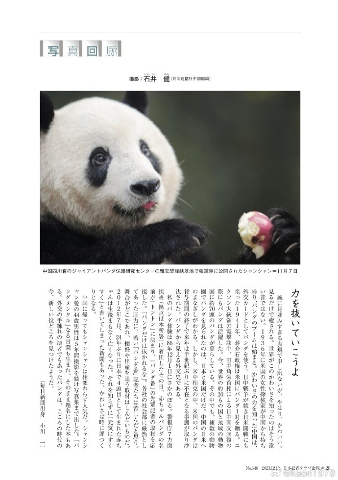 这是发在日本记者俱乐部会刊十二月份上的香香,好可爱。