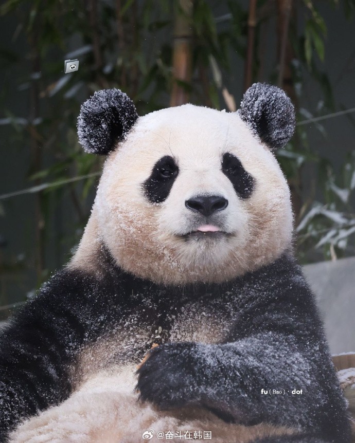 这张熊猫馋得流口水的照片,有点搞笑。 哈哈哈哈。