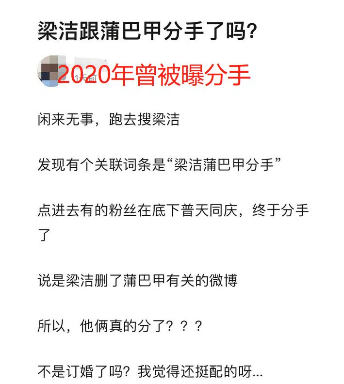 蒲巴甲梁洁恋爱4年官宣分手!男方曾求婚徐冬冬,和李小璐传绯闻
