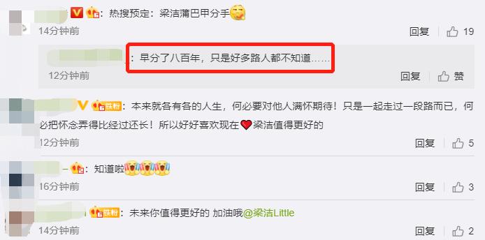 在梁洁的评论区中,粉丝们似乎都不是太意外,甚至还有网友表示,其实两人早就已经分手了,只是现在才公布而已。
