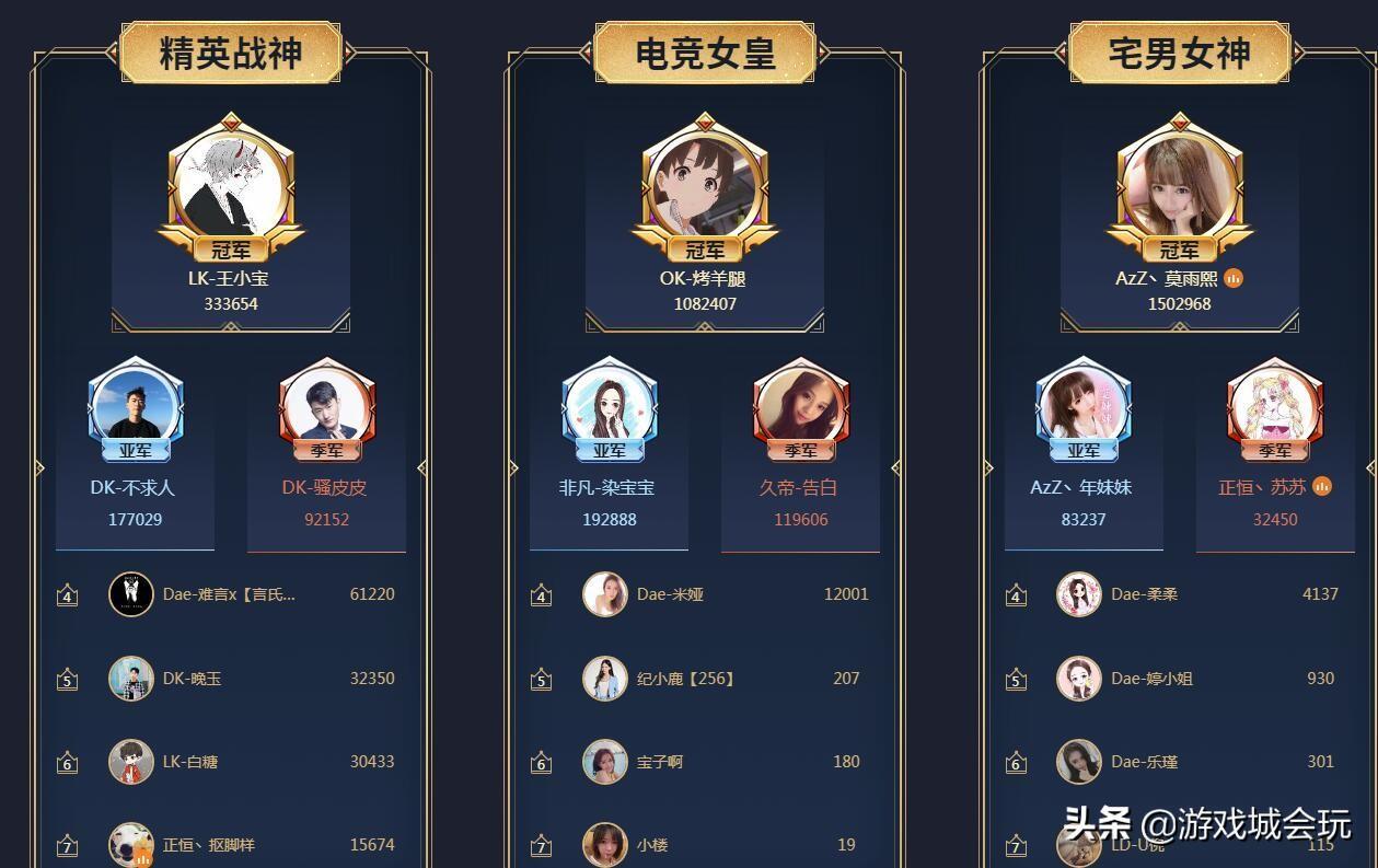 在其他分区,不求人顺利晋级到和平精英区的冠军争夺冠,而知名电竞解说小楼也晋级到电竞女皇的竞争,不过想要夺冠面临着很多对手,DNF主播狂人也如愿晋级到竞技之王,并且有望轻松夺冠。主机游戏主播楚河、董小飒也都顺利晋级到头号玩家和云顶圣手的冠军争夺中,并且目前均处在冠军位置。