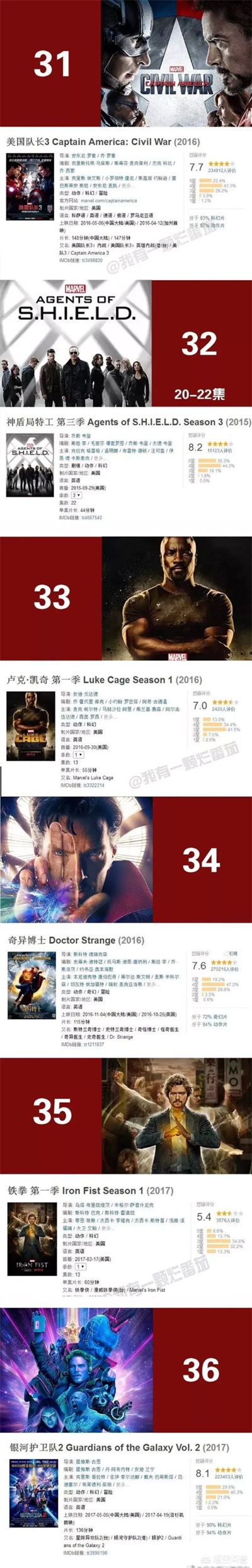 目前为止最全的漫威系列影片的正确观影顺序,包含了48部电影电视剧以及短片。