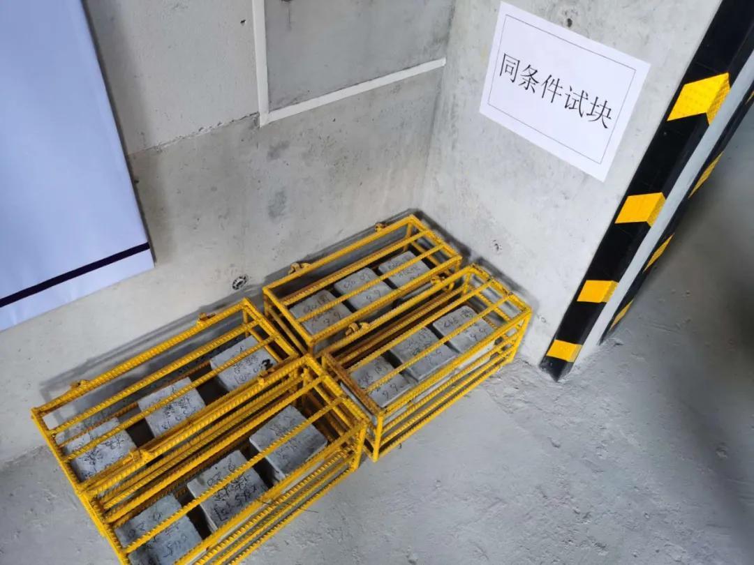 同条件测试块放置在各对应楼层楼梯的入口处,保证同条件试块养护的一致性和代表性,确保检测数据准确。