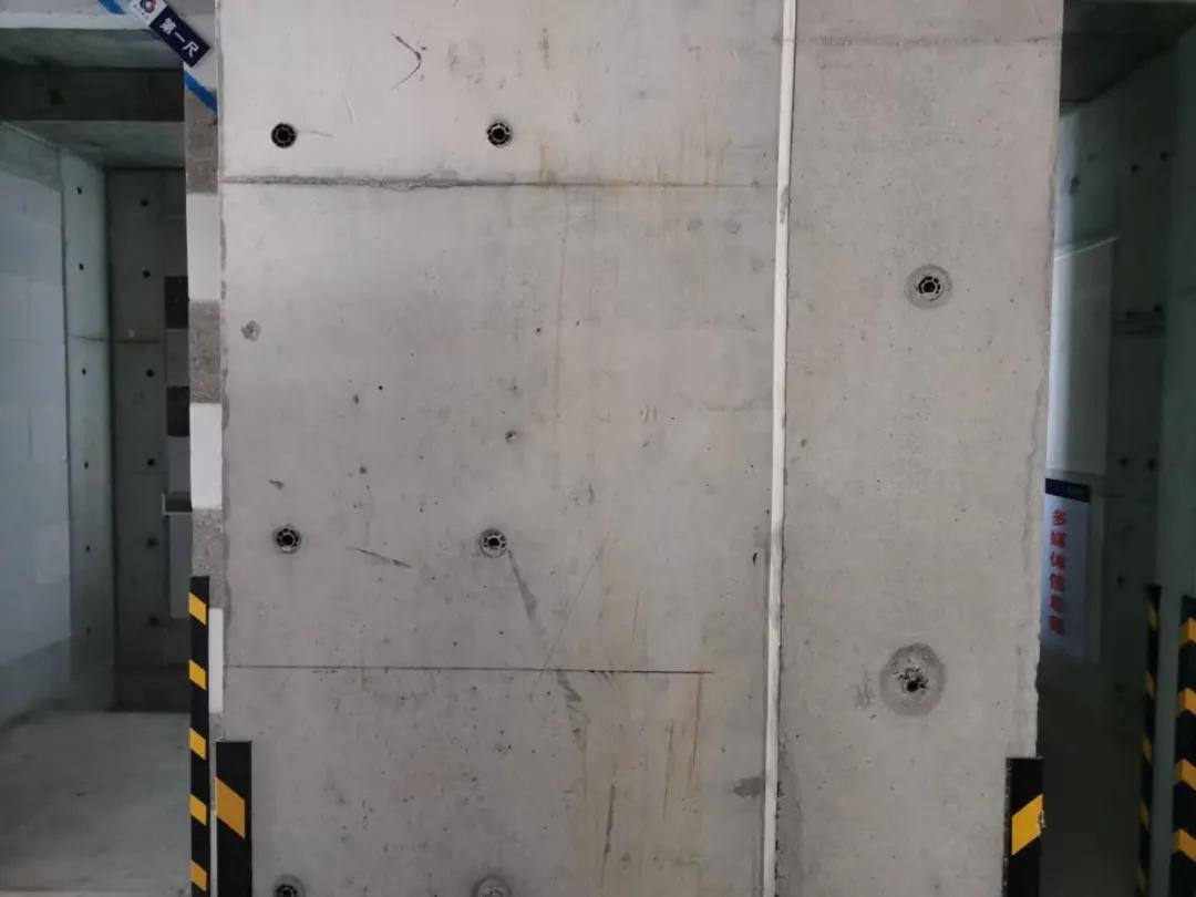 二次结构施工——左边是一结构钢筋混凝土,右边是代替砖砌体的二结构混凝土,接缝处拼缝严密,浇筑完成后浑然一体。
