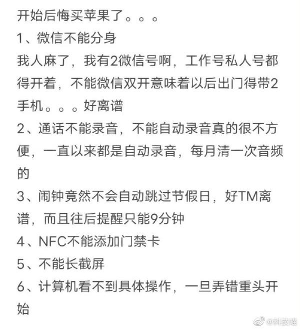 找谁说理?网友后悔买 iPhone 的理由 这些功能全没有