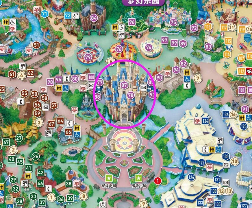 独特的粉色屋顶,与浅紫色外墙的有机结合,甜美而梦幻,让人流连忘返。这个是坐落在东京迪士尼乐园内部的一座主题城堡,据说和电影里的一模一样,下面是在园区中的位置。