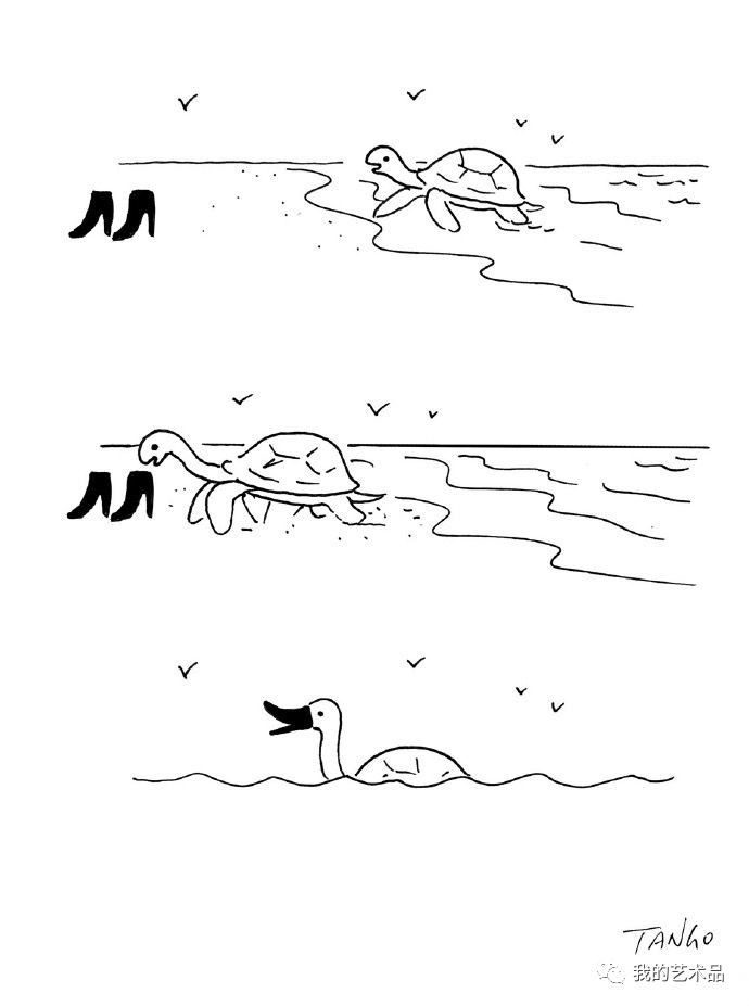 他的漫画向来以线条简单、脑洞大开著称