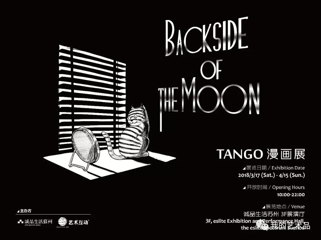 此次展览的主题为“BACKSIDE OF THE MOON”,由“诚品生活苏州”与“艺术互动”共同筹办,这是Tango首次亮相诚品生活苏州的个人漫画展。始终坚持“艺术改变生活”理念的“艺术互动”、“一座人文阅读、创意探索的美学生活博物馆”为定位的“诚品生活苏州”,与“深夜治愈系”漫画家Tango三者携手,必将打造出独特的体验,创造出共同的期待。