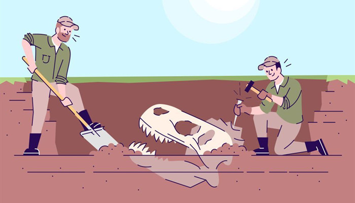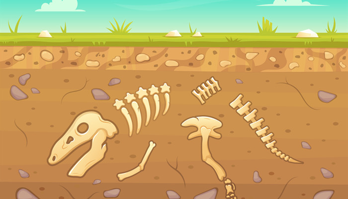 恐龙的骨骼和牙齿等坚硬部分是由矿物质构成的。矿物质在地下往往会分解和重新结晶,变得更为坚硬,这一过程被称为石化过程。随着上面沉积物的不断增厚,遗体越埋越深,最终变成了化石。而周围的沉积物也变成了坚硬的岩石。这个过程是极其缓慢的。