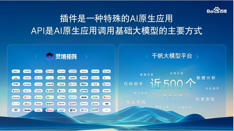 同期,百度还发布了文心一言插件生态平台——灵境矩阵。李彦宏将插件描述为 AI 原生应用的特殊形态。