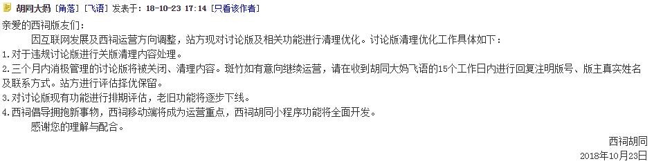 再见,青春!曾红极一时的“西祠胡同”发布公告,引发集体怀旧