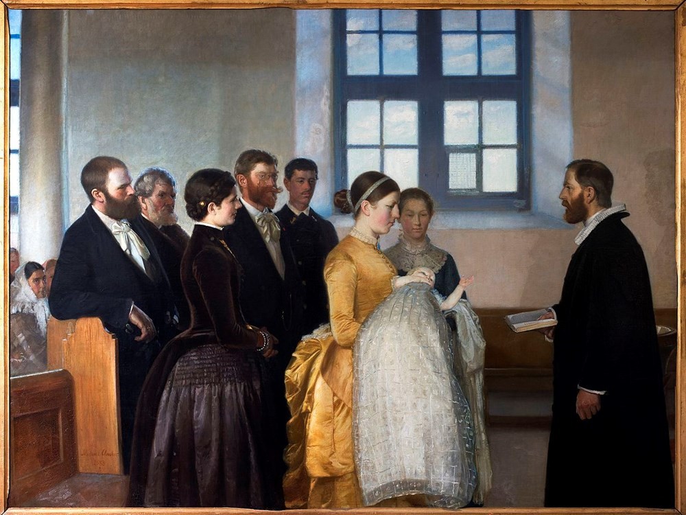 赏析:小女孩(安克的女儿)在母亲怀里受洗,左侧是斯卡恩画派的艺术家们,也是小孩的精神教父。没有增加神圣感的现实主义,只通过透入教堂窗户的自然光强调这是一场宗教仪式。