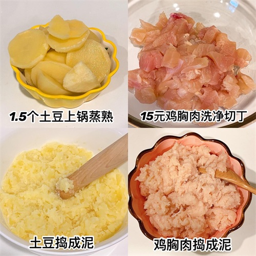 食材:1.5个土豆、15元的鸡胸肉(⚠️土豆和鸡胸肉的比例是1:1‼️)