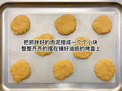 6️⃣将肉泥捏成一个个小麦乐鸡块;