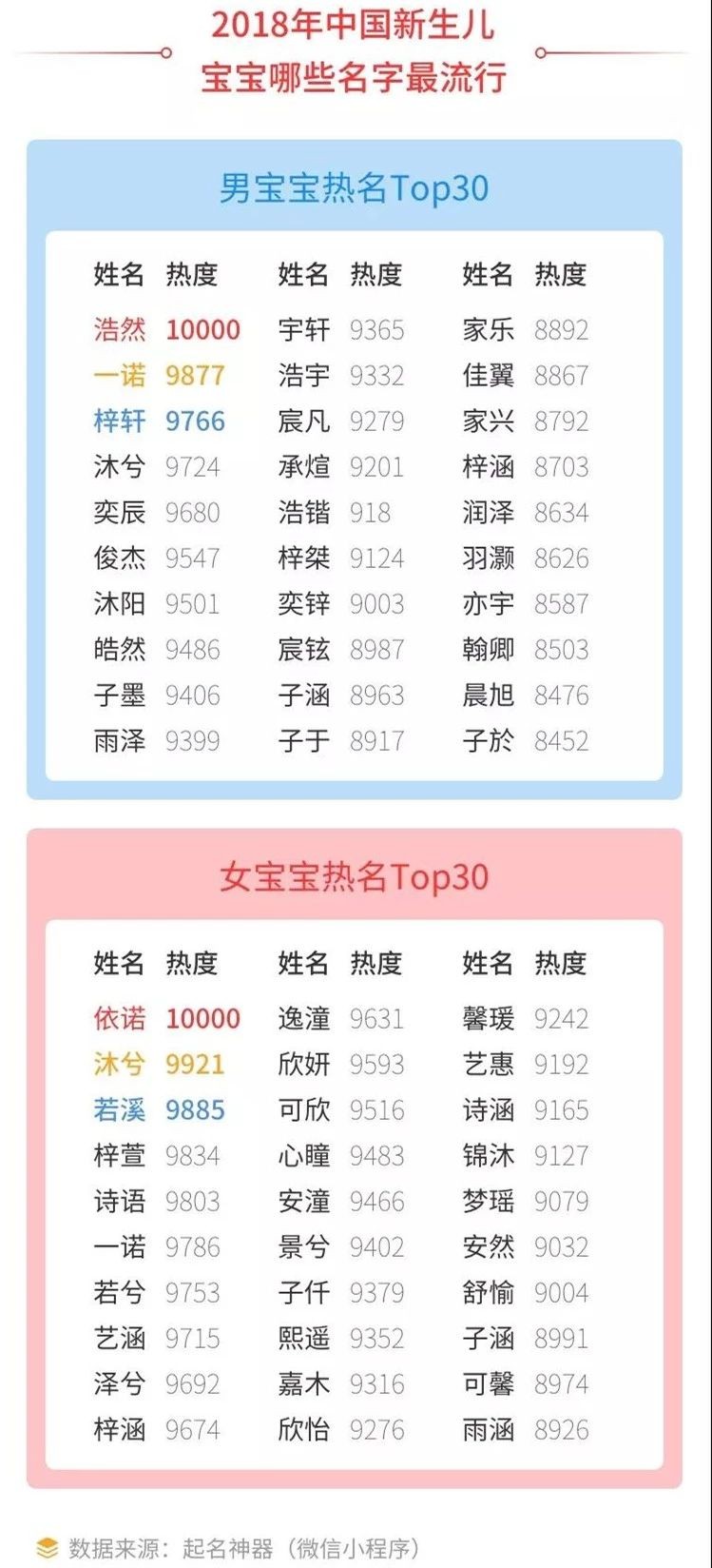 这几个名字别再给孩子起了!2018新生儿爆款姓名排行榜公布