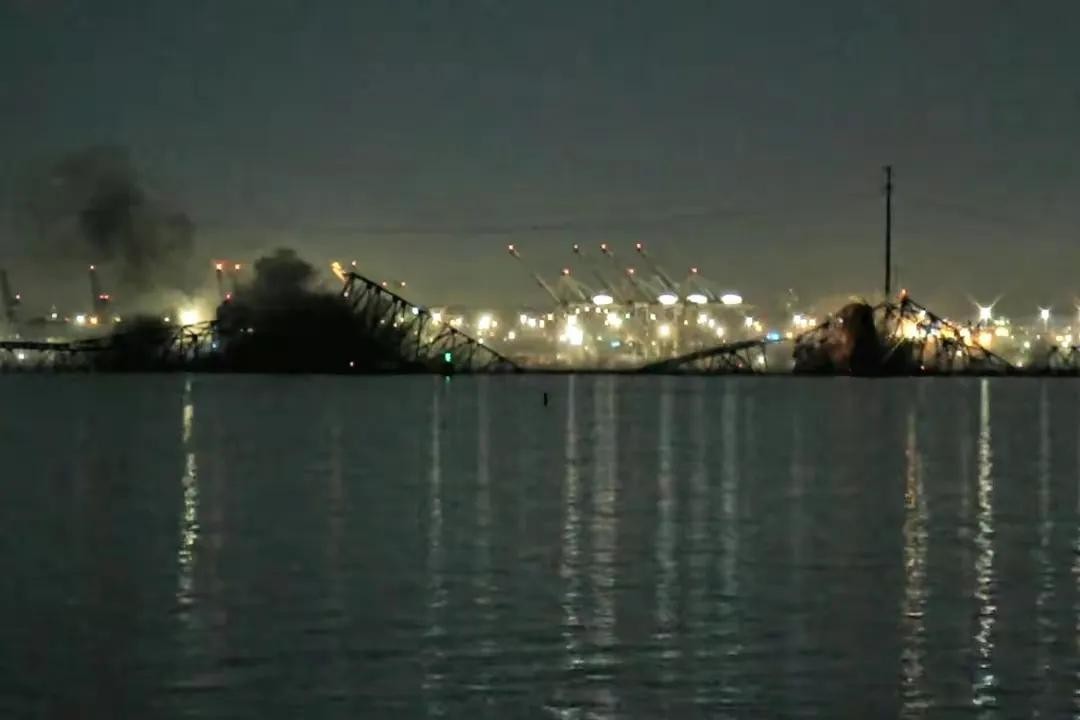 巴尔的摩大桥惊险坍塌!货船撞击引发爆炸,多车落水