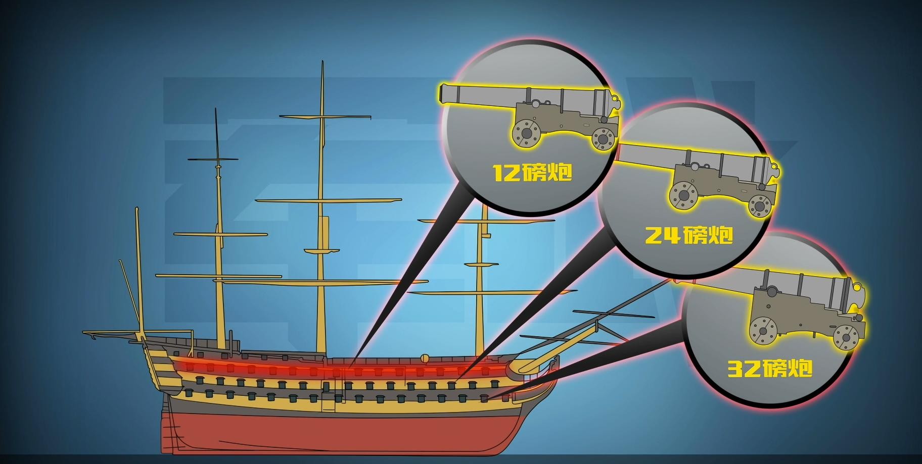 例如著名的胜利号风帆战列舰,就曾装备42磅、32磅、24磅、12磅等多种级别的滑膛炮。那这艘战列舰列装的总火炮数量也超过了100门,属于当时的一级风帆战列舰。